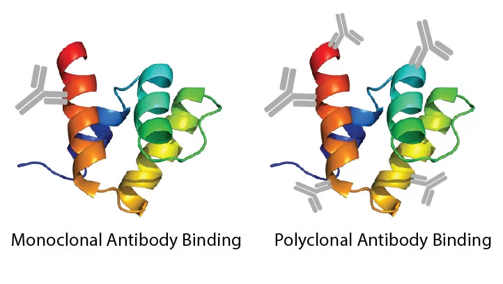 Monoclonal antibodies (mAbs) and polyclonal antibodies (pAbs) differ fundamentally in their origin, specificity, and applications. mAbs stem from a single cell clone and exhibit remarkable specificity by binding to a lone epitope on the target antigen with consistent structural uniformity.